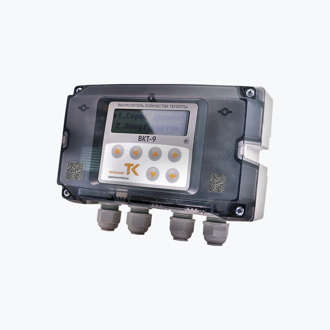 ВКТ-9 обеспечивает обработку показаний температуры, давления и расхода для одной или двух тепловых систем.
