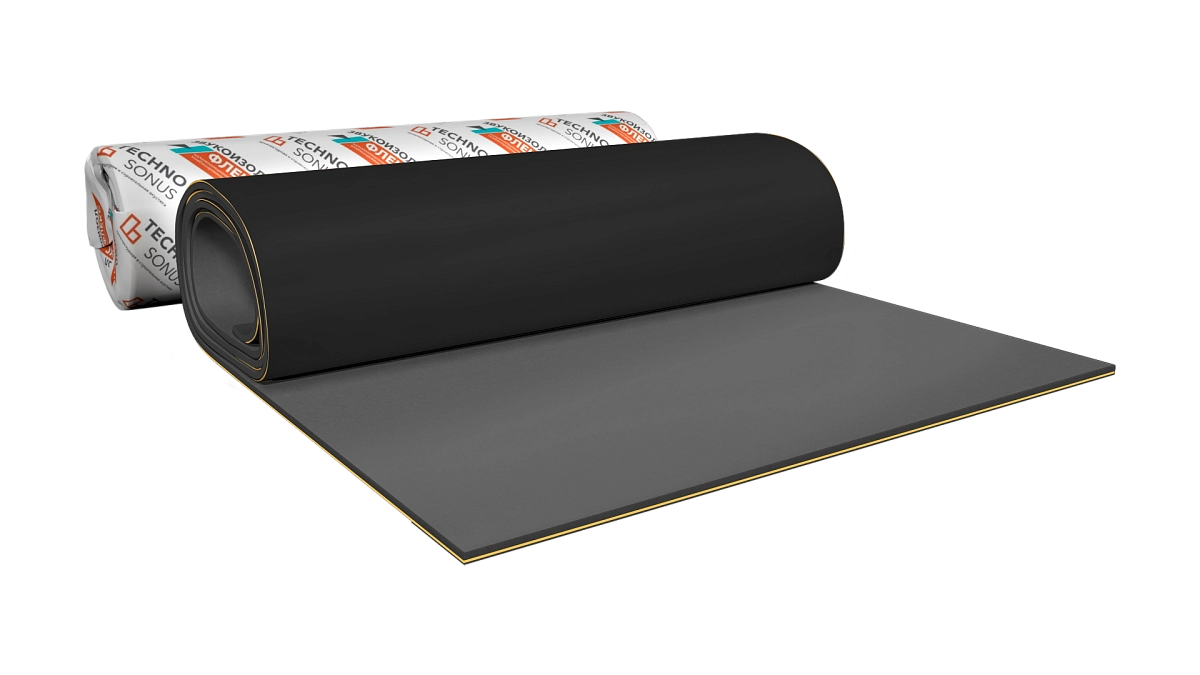Линейка звукоизоляционных материалов на основе эластомерного каучука и минерально-полимерной мембраны повышенной плотности (комбинированная мембрана со вспененным слоем)